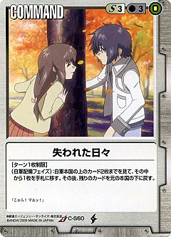 (敵軍配備階段):重置狀態的自軍1枚機體移至敵軍配備區。在回合終了時,拿取X枚卡片,其機體移至本來持有者的配備區。X的值是,其機體的資源消費的值同值。