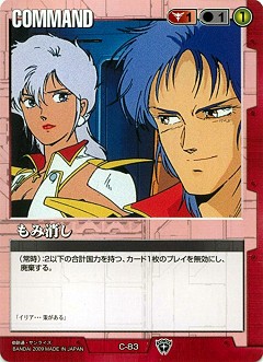 (防禦步驟):將敵軍機體一枚移到本來持有者的機庫中。在這之後(如果有的話)與移動的機體相同合計國力的敵軍機體一枚,移動到本來持有者的機庫中。